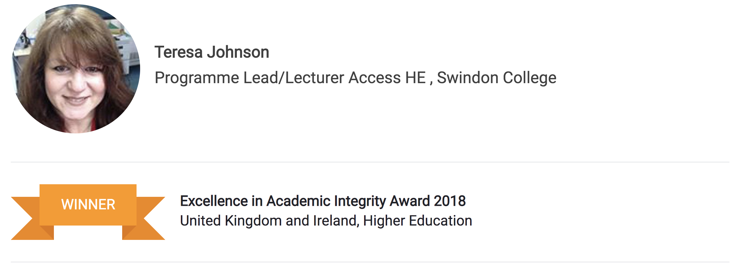 Upon winning the Turnitin Global Innovation Excellence in Academic Integrity Award for the UK & Ireland, Teresa was quite literally speechless. Elaborating on her philosophy, she shares: