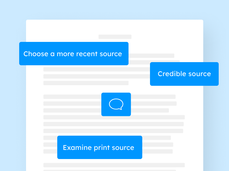Feedback set designed for formative and summative assignments that require credible sources to support ideas.